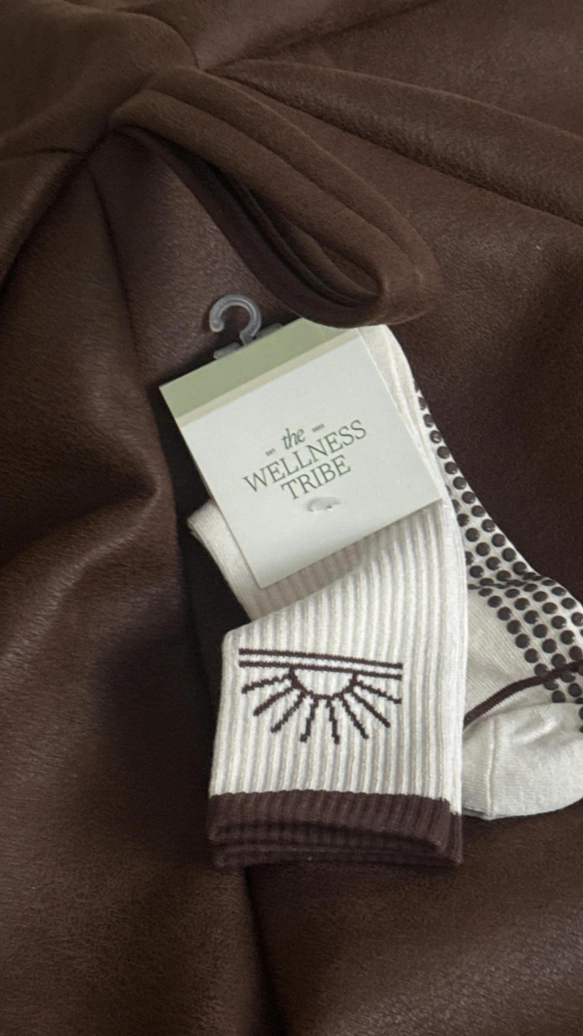 "TRIBE" Pilates Grip Socks Duo - Brown/Cream